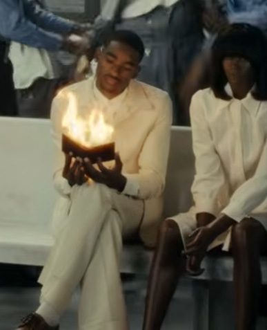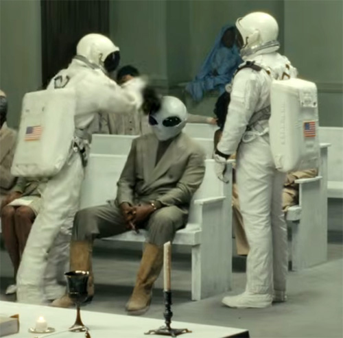 As stated above, Kanye underwent MKULTRA-style reprogramming that profoundly transformed him, even leading to rumors of him being cloned and replaced. The fact that “space agents” unmask Kanye while he sings about a “new me” might symbolize him being removed from the system (represented by the church) because he did not originally fit in.