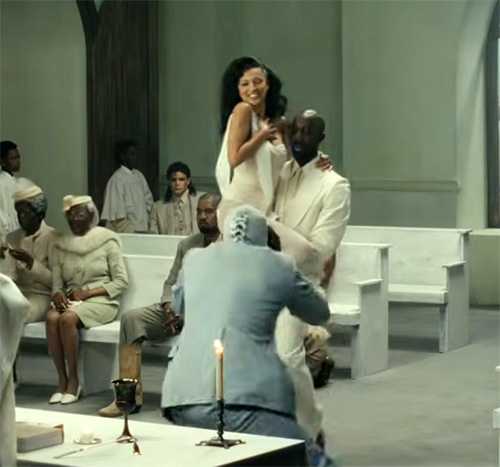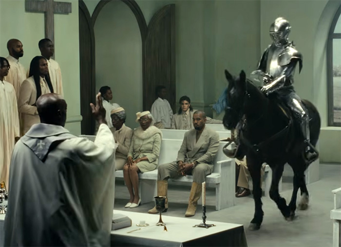 The things that happen in this church are not particularly godly – it is mainly about industry control and weirdness. Kanye’s lyrics go in the same direction: