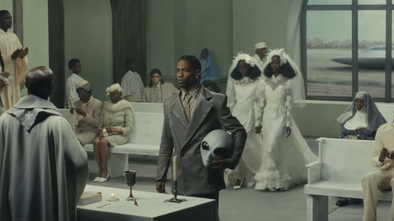 In many ways, Father is very Kanye West. It appears to be Christian while constantly contradicting it, and it appears to criticize the industry even as both Kanye and Travis Scott are deep in it. Furthermore, the video blatantly tells us that we’re not truly looking at Kanye and Travis, but at masks to fit in … or fit out.
